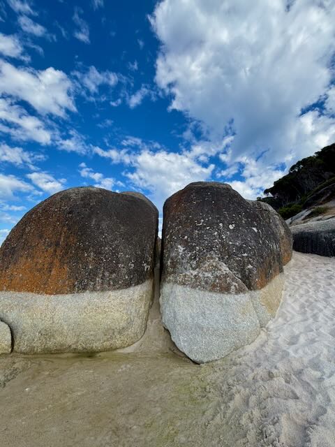Wilsons Promontory is Victoria’s favourite National Park and it is pretty much booked out on weekends and peak periods all year round. We thought we’d sneak in mid-week just before Easter while the weather was still good and re-acquaint ourselves with the beautiful beaches and walks. The last time we’d visited was over 12 years ago and nothing much had changed – except the Visitor Information Centre was being completely rebuilt so there was a bit of construction mess and noise.The usual plethora of parrots welcomed us in, nosy wombats scratched around our feet at dinner time, lizards scuttled in the bushes and there was evidence of echidnas too.